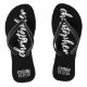 Fügen Sie den Namen Ihres Bräutigams (oder Braut) und das Hochzeitsdatum zu diesem stilvollen Paar von schwarzen Flip Flops.