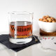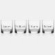 Set von einzigartigen modernen Whisky Brillen für den Bräutigam und seinen Trauzeuge, Trauzeugen und Zuschauer zu feiern mit bei seiner Bachelor-Party, Probe Abendessen, Hochzeitsempfang und andere Veranstaltungen. Personalisieren Sie sich mit den Namen des Bräutigams, Trauzeugen, Trauzeugen, Vaters, Brüder, etc., in einem großen und trendigen Schriftart und ihre Rolle in der einfachen Typografie.