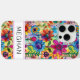 Mach eine Retro-Aussage mit diesem groovigen, von den 70ern inspirierten Hippie-Flower-Power-iPhone-15-Pro-Max-Handygehäuse! Es ist modern und trendy mit hellen, mehrfarbigen Wasserfarben-Blumen. Mach es einzigartig mit deinem Namen in einer modischen CAP-Schrift in Schwarz. Es wird auf deinem Handy fantastisch aussehen!
