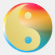Rundaufkleber mit einem Yin- und Yangsymbol, das halb gold und halb metallisch rot, grün, blau und gelb ist. Siehe passende Konfetti, Gefallen Tasche, Gefallen Tag und Packpapier. Sehen Sie sich die gesamte Sammlung der psychedelischen 60er-Sticker in den INVITES an. | Aufkleber und Etiketten. Dieses Produkt ist nicht mit dem ursprünglichen Urheberrechtsinhaber verbunden oder verbunden.