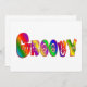 Bringen Sie den 60er und den 70er mit diesem farbenprächtigen, lustigen Design mit dem Wort GROOVY mit Friedenszeichen in der Schrift zurück. Ideal für jeden, der ein Fan der 1960er und 1970er Jahre ist.