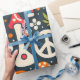 Groovy 70er Muster mit Friedenszeichen und Pilzen Geschenkpapier