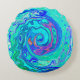 Groovy Abstrakt Ocean Blue und Green Liquid Swirl Rundes Kissen