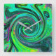 Groovy Abstrakt Retro Green und Magenta Swirl Quadratische Wanduhr
