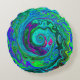 Groovy Abstrakt Retro Grün und Blau Swirl Rundes Kissen