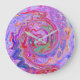 Groovy Abstrakt Retro Rot, Lila und rosa Swirl Große Wanduhr