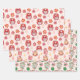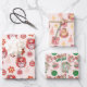 A set of three groovy pink Christmas wrapping paper sheets featuring Santa happily vibing with retro holiday ornaments.