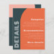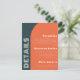 Eine moderne Hochzeitsausstattungskarte, die mit einem farbenfrohen, aquamarin-blauen, orangefarbenen und pfirsichfarbenen Pop aus Bogenformen bestückt ist. Entworfen mit farbenfrohen abstrakten Bogen-Elementen und kühnen Schriftart, die ein trendiges boho Retro-Ambiente geben, perfekt für Frühling, Sommer oder Hochzeit im Herbst. Die Farbe der Bogenformen kann ebenfalls angepasst werden.