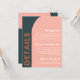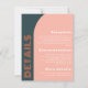 Eine moderne Hochzeitsausstattungskarte, die mit einem farbenfrohen, aquamarin-blauen, orangefarbenen und pfirsichfarbenen Pop aus Bogenformen bestückt ist. Entworfen mit farbenfrohen abstrakten Bogen-Elementen und kühnen Schriftart, die ein trendiges boho Retro-Ambiente geben, perfekt für Frühling, Sommer oder Hochzeit im Herbst. Die Farbe der Bogenformen kann ebenfalls angepasst werden.