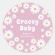Groovy Baby Girl Shower Blume Power Daisies Pink Runder Aufkleber