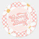 Groovy Baby Pink Karo Daisy Runder Aufkleber