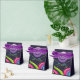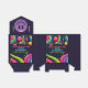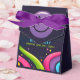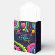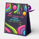 Eine lebendige und spielerische Geburtstagseinladung mit psychedelischem, Retro-inspiriertem Design. Der dunkle Hintergrund ist mit farbenfrohen, wirbelnden Formen, abstrakten Linien und lebhaften Tropfen in den 70er Jahren geschmückt. Die Grenze ist ein lustiges Muster von bunten Smiley mit Sternen und Blasen, die im gesamten Design verstreut sind. Der Text ist in einer Mischung aus kühnen und spielerischen Schriftart, wobei die wichtigsten Details in hellblau und rosa hervorgehoben sind.
