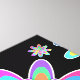 Groovy Colorful Blume sind ein niedliches und wunderschönes Grafikdesign in allen Retro Pastellfarben in einer farbenfrohen Darstellung von Spaß.