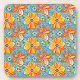 Untersetzer mit einer Abbildung von Retro-Blume in Vintagen Farben Blau, Gelb und Orange, die ein Retro-Flair aus der Mitte des Jahrhunderts geben.