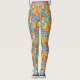 Leggings mit einer Abbildung von Retro-Blume in Vintagen Farbtönen Blau, Gelb und Orange, die ein Retro-Flair aus der Mitte des Jahrhunderts abgeben.