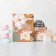 Mit diesem großartigen Boho 70er Blume-Verpackungspapier können Sie Ihre Geschenke stilvoll wackeln. Dieses lebendige Design ist perfekt, um jedem Geschenk eine Retro-Touch hinzuzufügen.