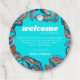 Groovy Boho Retro Aquamarin Monogram Wavy Wedding Geschenkanhänger