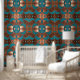 Groovy Bold Retro Türkis Kupfer Muster Tapete