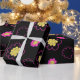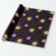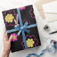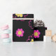 Vintages Blumenmuster, lebhafte Farben auf schwarzem Hintergrund.