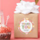 Eine kühne Blume Power Hippie Geburtstagsparty danke Ihnen Aufkleber, dass ist perfekt für jedes junge Mädchen. Das groovy Design bietet mehrfarbige Gänge, die eine Grenze schaffen. Spaß 1970er Jahre Briefe mit dem Text "Danke" fügen eine farbenfrohe Atmosphäre hinzu. Benutzerdefinierter Text erlaubt es Ihnen, eine persönliche Danksagung-Nachricht hinzuzufügen.
