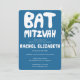 Groovy Handlettern Custom Bat Mitzvah Blue Stars Einladung