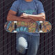 Der auf diesem Skateboard zeichnend Freefflügler wurde durch die psychedelischen Designs der Groovy, Boho, Hippy 1960er Jahre inspiriert