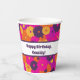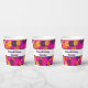 Diese Papiertassen weisen ein von der Hippie-Ära inspiriertes Gesamtbild auf, mit Blume im dunklen Stil in lila, orangen, gelben und hellen Rosatönen. Sie sind bereit, mit Ihrer eigenen, individuellen Nachricht personalisiert zu sein, sodass Sie eine Art Party für Ihre Veranstaltung erstellen können.