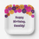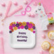 Fügen Sie einem Party mit personalisierten PapierTellern eine Blume-Power-Touch hinzu. Diese quadratischen Teller haben Spaß an Retro-Stil und sind in lila, rosa, orangefarbenen und gelben Farbtönen gehalten. Ihre individuelle Nachricht unten koordiniert die lila Schrift.