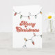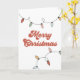 Groovy Frohe Weihnachtskarte mit Weihnachtsbeleuchtung und Retro Schriftart und Farben.