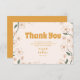 Mit dieser großartigen Blumenkarte Dankbarkeit im Stil zeigen. Freuen Sie sich auf einen warmen Senfton, spielerische Retro-Typografie und delikate, handgezeichnet Blume. Ein idealer Weg, Ihre Gäste zu schätzen und gleichzeitig das inspirierte Ambiente der 70er Jahre behalten, das während Ihres besonderen Tages konsistent ist. Einzigartig, herzlich und stilvoll Retro.