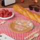 Retro inspirierte groovy 1. Geburtstag Teller mit 70er-Stil Blume und boho Schriftart und Farben.
