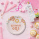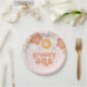 Retro inspirierte groovy 1. Geburtstag Teller mit 70er-Stil Blume und boho Schriftart und Farben.