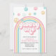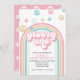 Groovy One Retro Regenbogen inspirierte die Einladung zum ersten Geburtstag mit Schriftart und Farben im Stil der 70er Jahre.