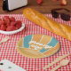 Groovy One Retro inspirierte Teller zum ersten Geburtstag mit Schriftart und Farben im Stil der 70er Jahre.