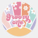 Groovy One Retro Sunshine Rainbow Daisy Runder Aufkleber