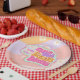 Retro inspirierte Aufkleber mit 70er Jahren Stil und bohhe Schriftart und Farben