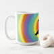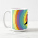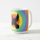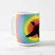 Diese Tasse weist eine Ente-Silhouette unter einem Muster von Retro-Regenbogenkreisen auf. Sie können dieses farbenfrohe Design auf andere Arten von Trinkbehälter und Geschenke übertragen. Original Artwork vom Wilderness Store