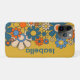 Groovy Retro 60er 70er Blume Personalisiert iPhone Case. Spaß, fröhlich und skurril, mit einer Vintagen 1960er 1970er Jahren. Der Senf ist gelb, orange und blau. Namenstext kann personalisiert / angepasst werden. Von Kierkegaard Design Studio.
