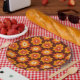 Groovy Retro 70er boho hippie Orange Blume Muster Pappteller