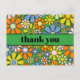Groovy Retro Blumenfarben 60er 70er Muster Danke Karte. Hell, fröhlich und perfekt für Frühling, Sommer oder zu jeder Zeit. Mit Vintagen 1960er Jahren in den 70er Jahren. Von Kierkegaard Design Studio.