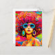 Groovy Retro Chic Floral Pop Postkarte für die coole böhmische Hippie-Girlie
