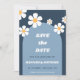 Groovy Retro Dusty Blue Boho Arch & Daisy Muster Save The Date