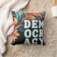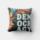 .Fügen Sie Ihrem Dekor mit diesem auffälligen Kissen eine fesselnde Touch hinzu. Das Wort "Demokratie" ist in Retroschrift, aufgeteilt in drei Zeilen. Der Hintergrund ist ein blühend abstraktes Design wie bunte Blätter wachsen