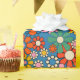 Groovy Retro farbenfrohe 60er 70er floral Muster Umschlagpapier. Lebhafte, farbenfrohe, hübsche, nahtlose Wiederholungsmuster mit einer Vintagen Ästhetik und einem Hippie-Ambiente in lebhaften Blau-, Orange-, Senf-, Grün- und Rosatönen. Von Kierkegaard Design Studio.