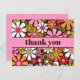 Groovy Retro Blumenfarben 60er 70er Blume Muster Rosa und Braun. Niedlich und fröhlich, mit einem Vintagen Flair der 1960er Jahre in den 70er Jahren. "Vielen Dank" Text kann personalisiert / angepasst werden. Von Kierkegaard Design Studio.