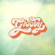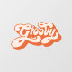 Groovy Retro Hippie Schriftart in hellrosa und orange Skript Decal. Ideal für einen Geburtstag in den 1960er oder 1970er Jahren oder für jedes Groovy Event.