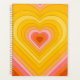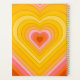 Retro-Herz-Burst-Design. Herzschichten in Orange, Gelb, Rosa. Groovy Retro Herzgeschenke, Wohngestaltung.