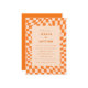 Groovy Retro Orange Abstrakte Schachbretterhochzei Einladung