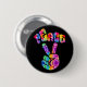 Groovy Button Back Button mit Retro-Stil gefärbte Krawatte Friedenszeichen Hand mit geschwungenen Text