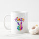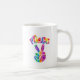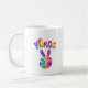 Groovy Kaffee Tasse mit Retro-Stil gefärbte Krawatte Friedenszeichen Hand mit geschwungenen Text